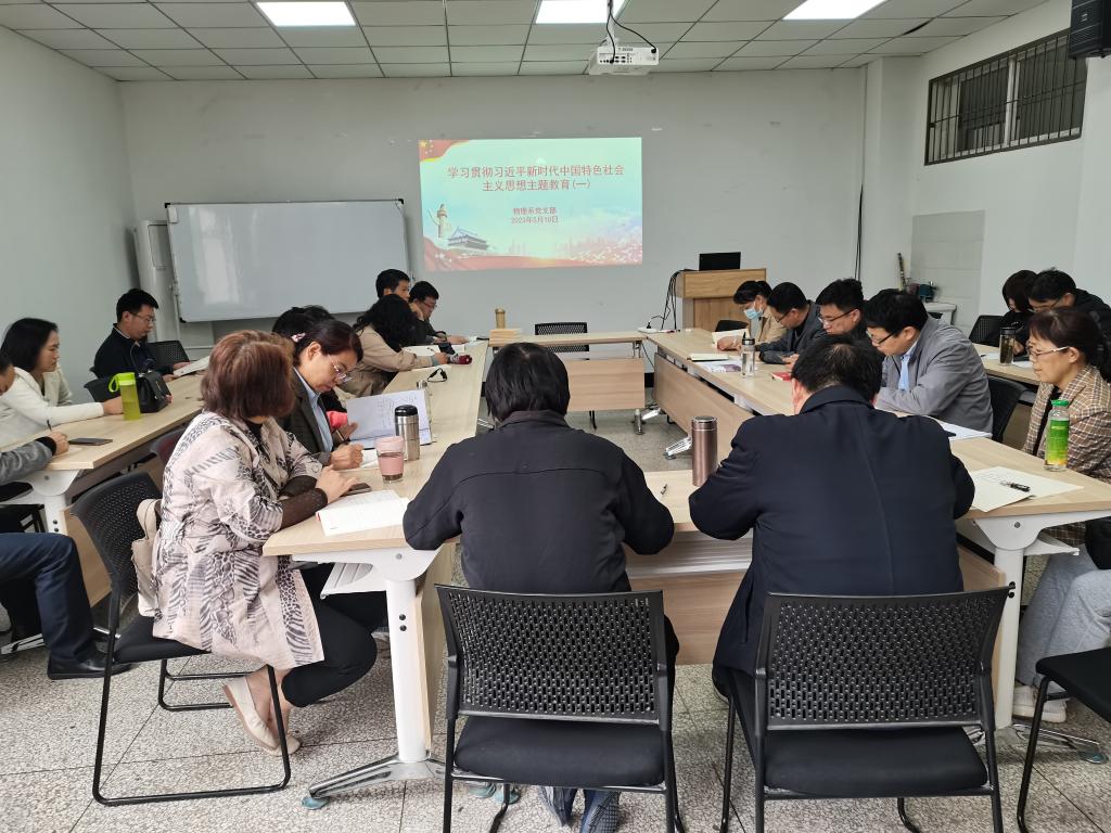 5月10日下午,PA视讯物理系党支部在骊山校园实验楼206B会议室组织理论学习,开展学习贯彻习近平新时代中国特色社会主义思想主题教育,会议由支部书记王乙先主持。