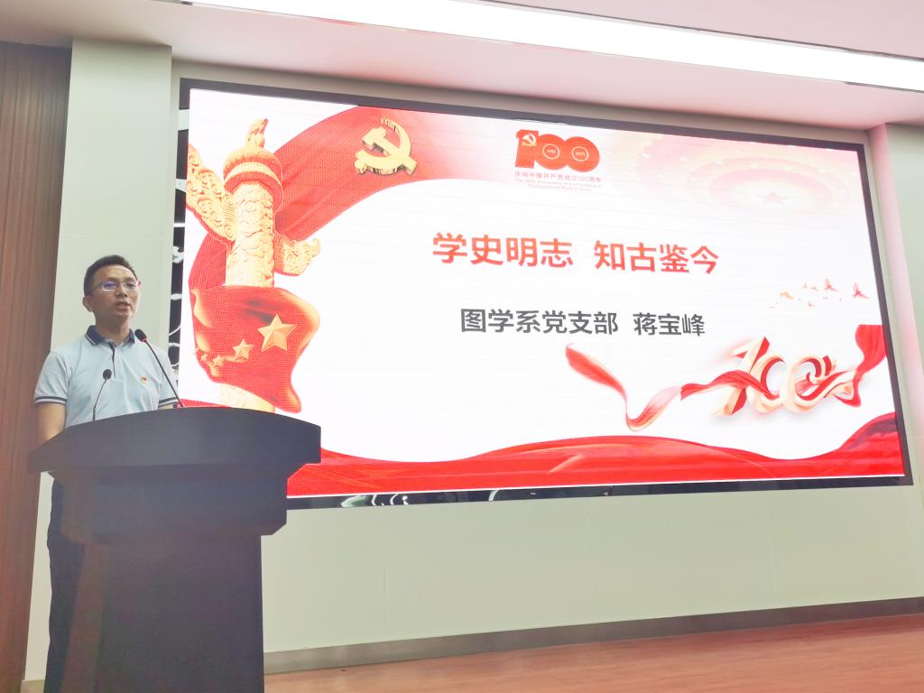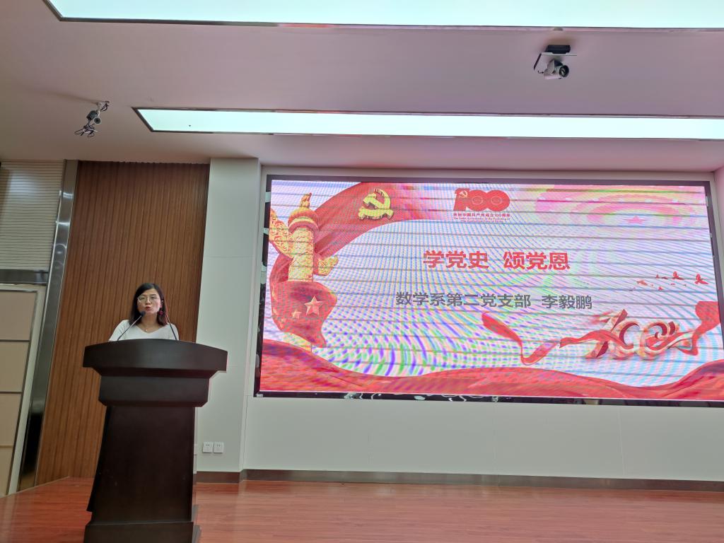 经各党支部选拔,推荐李素梅、李毅鹏、寇海波、李绍蓉、蒋宝峰五位同志在大会上作“我心向党庆百年、奋发图强逐梦行”主题演讲汇报。他们紧扣党史学习教育,有的讲述家乡党史故事“强渡大渡河,巧克天险一往无前”,有的结合学习讲“学党史、铸新魂”“学史明志、知古鉴今”个人心得和感悟,有的以“唱支山歌给党听”“学党史、颂党恩”来表达对党的感恩、热爱之情。5位老师的精彩演讲引发大会阵阵掌声。
