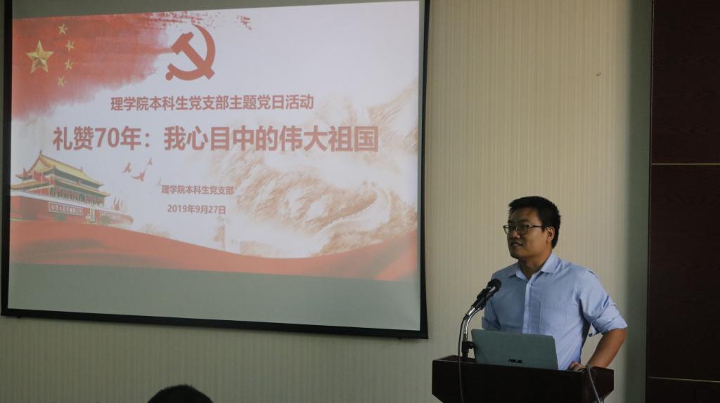 首先支部书记和支部副书记分别做了“礼赞70年:我心目中的伟大祖国”主题演讲。支部书记侯斌刚老师通过一系列数据分析向全体党员阐述了祖国经济发展的迅速,让全体党员清楚直观地了解到70年来祖国的发展历程;支部副书记赵明老师通过将印度的发展同中国对比,同时讲述了反映印度真实生活状况的两部电影,从而凸显出了中国发展的速度之快。员工党员也以主题演讲的方式分享了自己心目中的伟大祖国,立志努力学习,为祖国发展做出自己的贡献。