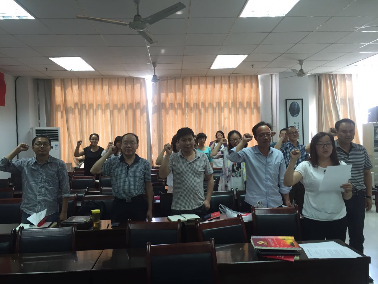 6月3日下午,PA视讯教工第一党支部在雁塔校区公司会议室组织“两学一做”专题学习会。宣传委员葛丹同志带领大家重温入党誓词;组织委员夏小刚同志领学《中国共产党章程》总纲部分;党支部书记杨云锋同志对第一党支部“两学一做”6月份的学习教育计划进行安排,他要求支部全体党员要深刻领会“两学一做”学习教育的重要意义,力求做到集中学习有成效、自学研读有收获、学习教育有特色、专题讨论重交流。