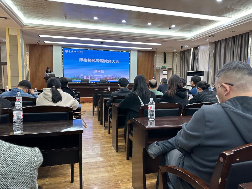 会议强调,加强师德师风建设,要全面落实“第一议题”制度,深入学习习近平总书记关于教育的重要论述,坚持不懈用习近平新时代中国特色社会主义思想铸魂育人。老师们要坚定理想信念、陶冶道德情操、涵养扎实学识、勤修仁爱之心,树立“躬耕教坛、强国有我”的志向和抱负,坚守三尺讲台,潜心教书育人;要大力弘扬教育家精神,牢记为党育人、为国育才的初心使命,努力成为有理想信念、有道德情操、有扎实学识、有仁爱之心的好老师,以赤诚之心、奉献之心、仁爱之心投身教育事业,护航青年学子健康成长。