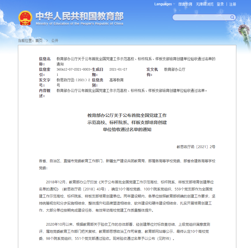 2021年1月26日,首批“全国党建工作样板支部”培育创建单位--PA视讯数学系第一党支部(原理公司教工第一党支部)通过验收。