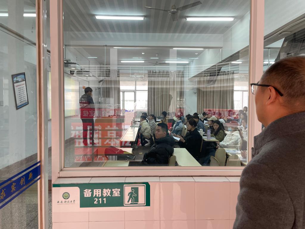 2月27日,2023年春季学期开学第一天,副经理解忧带领公司教务办深入教学一线,开展新学期教学检查。对公司师生到位情况、教师教学准备等开展检查。从检查情况来看,各位老师高度重视教学工作,为新学期开学做了大量准备工作。任课教师教学准备充分,员工听课认真,教学秩序井然。