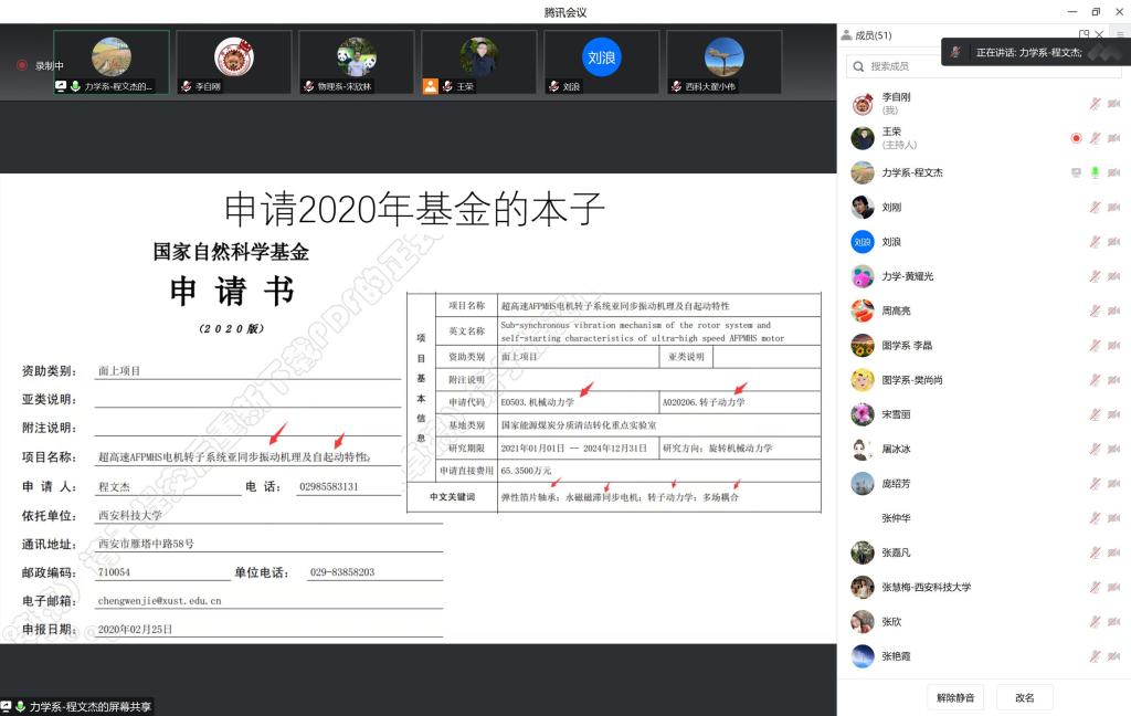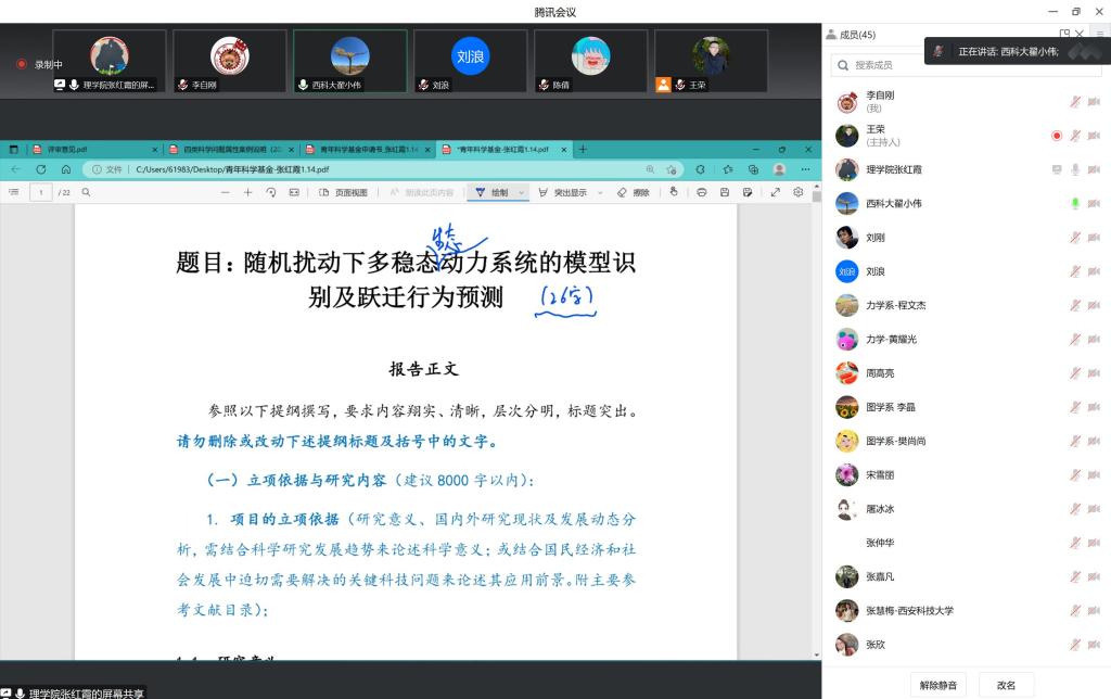 2023年1月14日,PA视讯通过在线会议举行2023年国家自然科学基金项目评审会。会议邀请了公司科技处翟小伟处长,能源公司教授、国家优青项目获得者刘浪教授,为PA视讯教师特别是青年教师就基金本子撰写思路,给大家出谋划策。本次评审会旨在通过具体案例诊断分析申报书撰写过程中的共性问题,重点针对科学问题及其属性、创新型及研究价值等方面,通过专家的指导,和公司各位老师一起理清申报课题的主线和具体研究方案,进一步凝练科学问题。会议由副经理李自刚主持,公司经理张仲华、副经理解忧、张慧梅教授、张嘉凡教授以及拟申报基金的教师50余人参加了本次会议。
