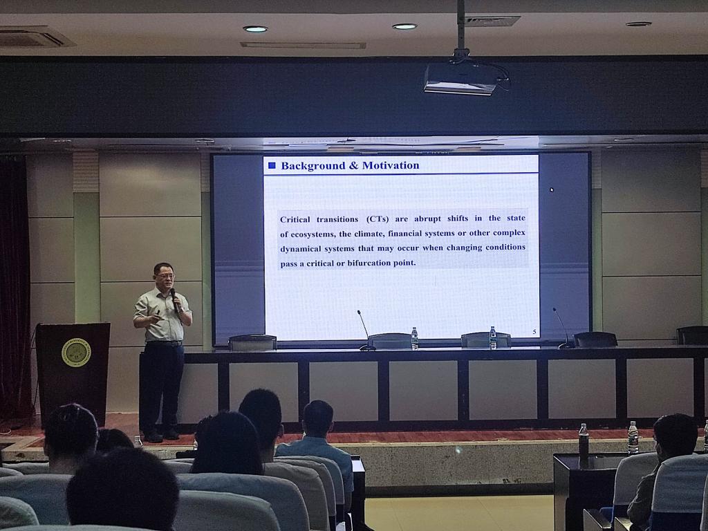 许教授的报告以航空工程、生态系统中噪声诱导现象的一个点问题出发,洞悉了随机性与非线性相互作用的复杂性,从多个维度为我们揭示了复杂系统在扰动下由于响应跃迁而呈现的临界转移现象,并提出了转移发生的早期预警指标和影响范围的定量分析方法。特别是,提出了抑制这种危害响应变化的新方法和新思路,对工程中深入了解和利用不确定性带来了深入思考和启发。