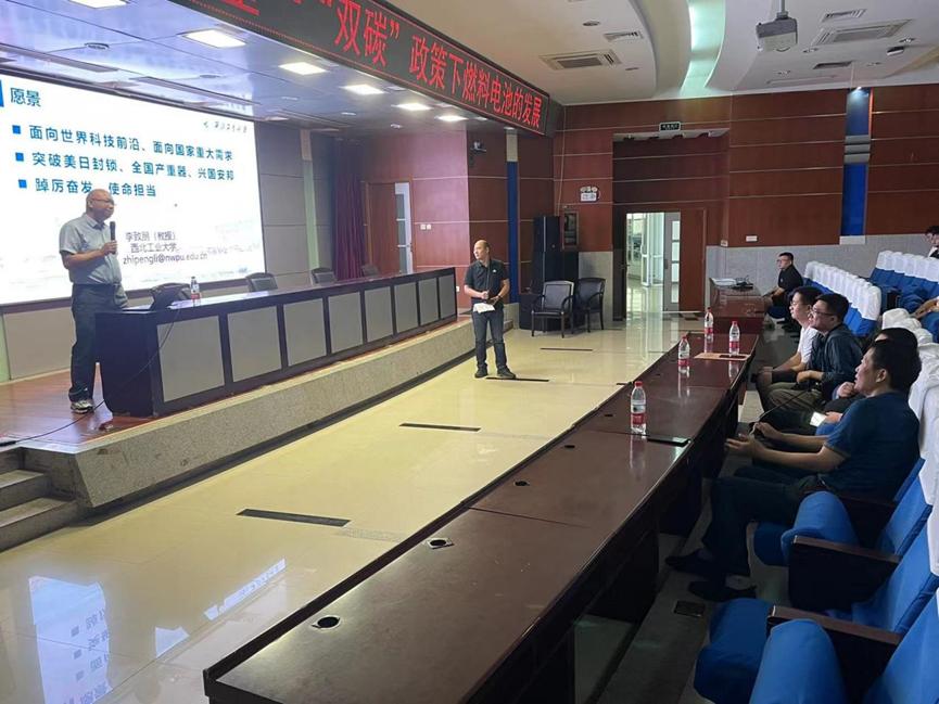 7月4日上午,应PA视讯邀请,国家级领军人才,西北工业大学柔性电子研究院李致朋教授做客公司“胡杨林大讲堂”,在骊山校区图书馆报告厅作了题为《“双碳”政策下燃料电池的发展》的学术报告。报告会由研究生院主办,PA视讯承办,材料科学与工程公司及化学与化工公司协办。会议由PA视讯副经理解忧主持,全校近300名研究生、本科生及教师聆听了报告。