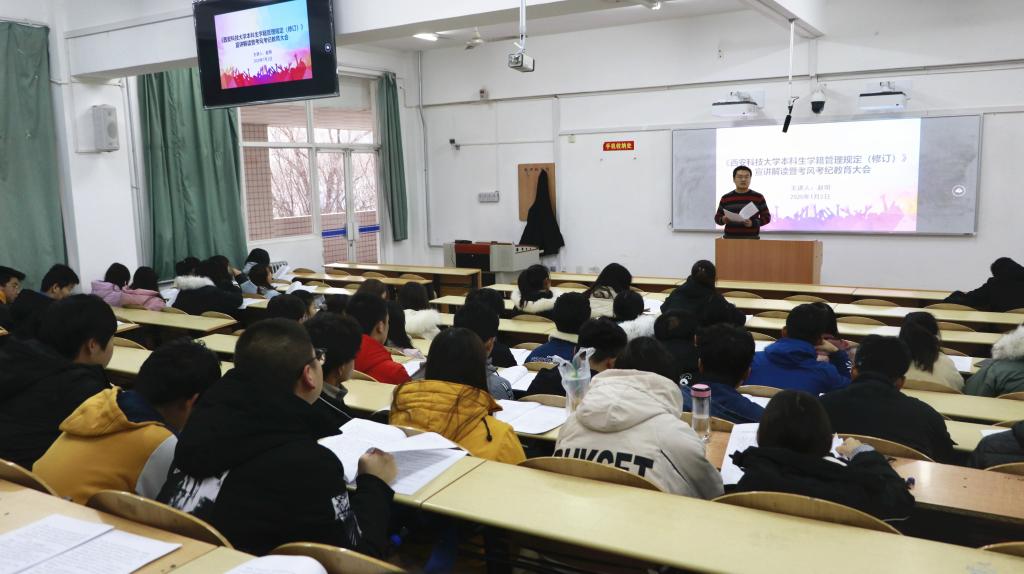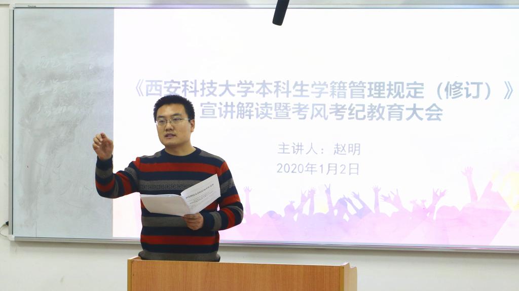 1月2日下午,PA视讯召开本科生学籍学位新规宣讲解读暨考风考纪教育大会,PA视讯学工办主任赵明主讲,2019级全体员工参加会议。