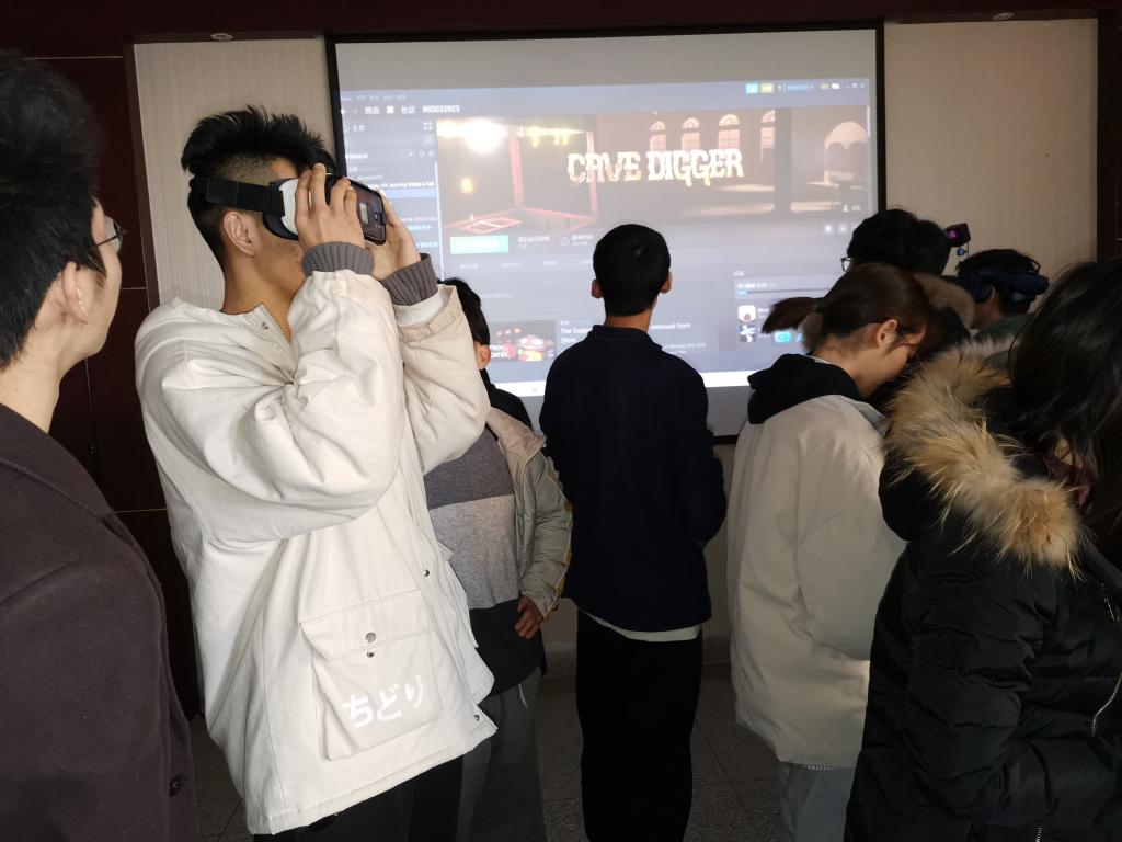 王一凡首先向在场师生讲解了虚拟现实的原理、行业现状及发展前景。随后,介绍了其公司的概况、业务范围、合作单位等内容。接着,进行了一些项目案例和学员作品的展示。最后,让师生们现场体验了其公司开发的一些产品。