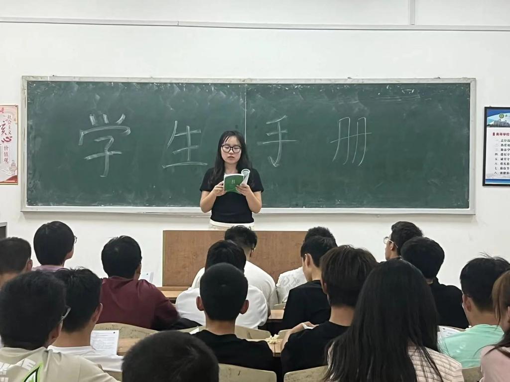 为引导2024级新生深入了解公司员工管理相关规定,提高遵守校规校纪意识,养成独立自主的学习生活习惯。9月19日,2024级新生辅导员薛一丹于一号教学楼自习室带领2024级新生学习《员工手册》。