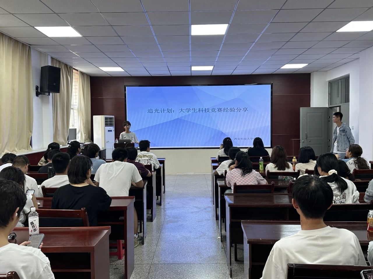 雷云程以其丰富的竞赛经历为切入点,详细介绍了各类科技竞赛的特点和参赛要求。他提到,科技竞赛不仅是对专业知识的检验,更是对创新能力和团队协作能力的综合考验。雷云程同学通过分享自己参加各类科技竞赛的经历,向同学们展示了如何在比赛中挖掘潜力、突破自我,最终取得优异成绩的过程。