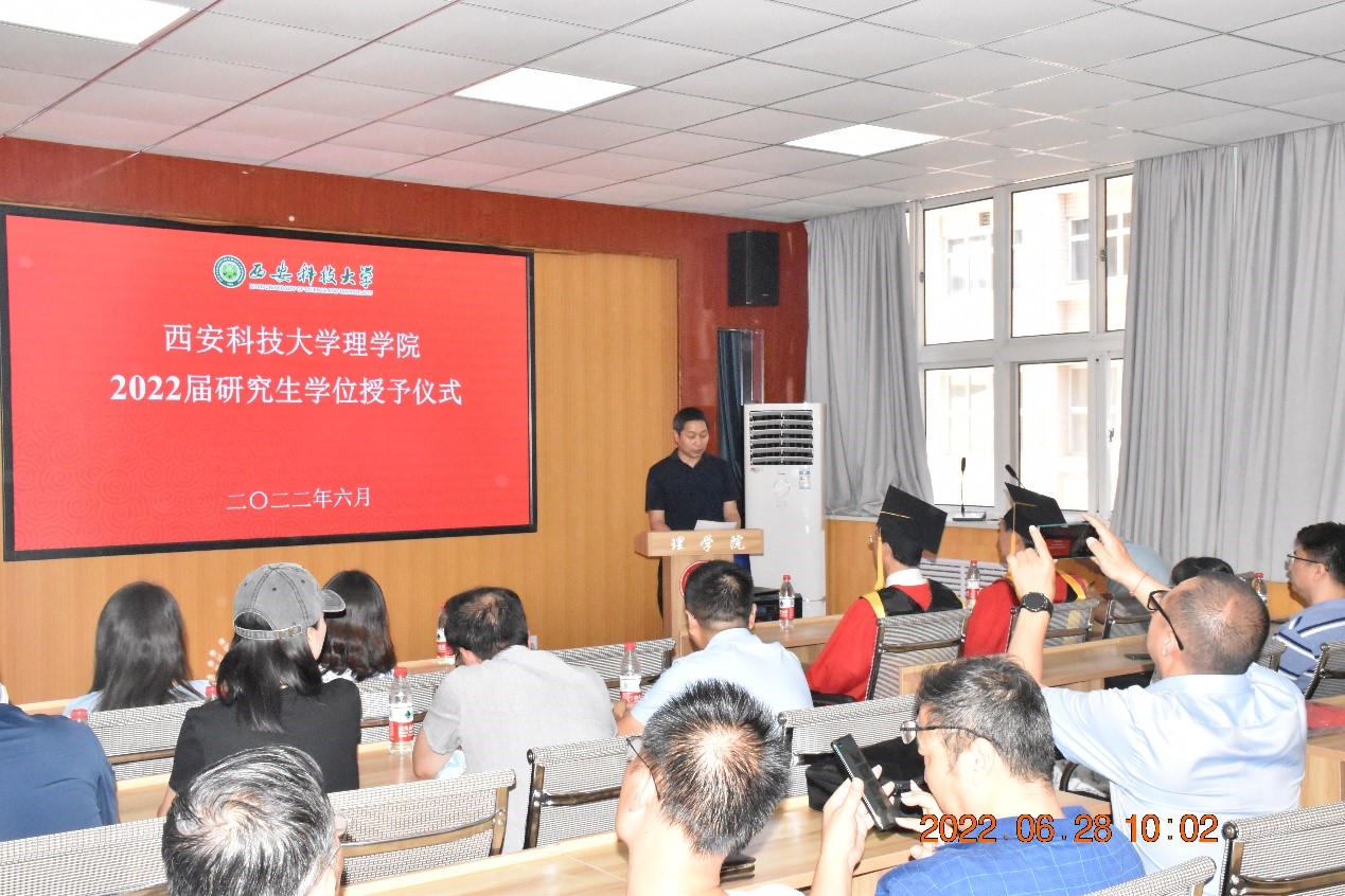 6月28日早上,PA视讯在临潼校园实验楼208室隆重举行2022届硕士研究生毕业典礼暨学位授予仪式,大会由副经理李自刚主持。