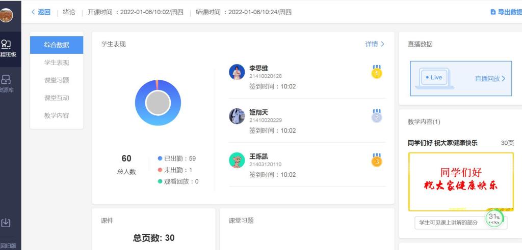 公司组建了公司-系-课程团队三级在线教学督导体系,全程监控教学质量,确保线上教学不打折,实现不一样的课堂,也能有一样的精彩。组建了以PA视讯经理为组长的教学督导专家组,成员由教学副经理、系主任、实验中心主任组成,全程监督公司所有老师的网络教学开展情况。