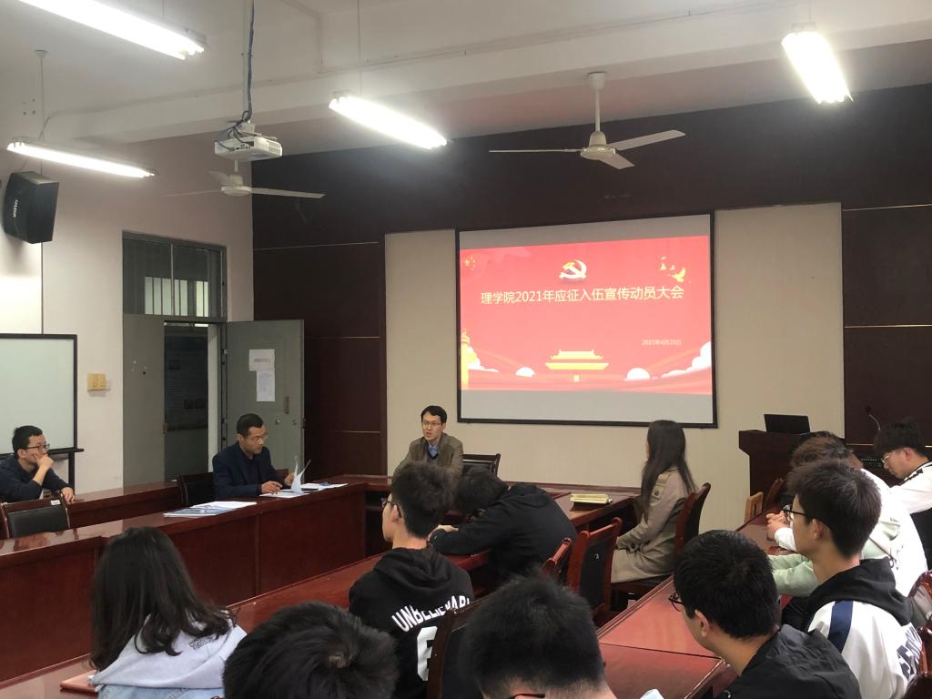 4月23日(周五)上午10:00,PA视讯在临潼校区实验楼220会议室举行2021年应征入伍宣传动员大会。国防教育科科长杨建涛老师、公司党委副书记高欣老师、2017级辅导员侯斌刚老师以及公司2017级全体员工参加了会议。