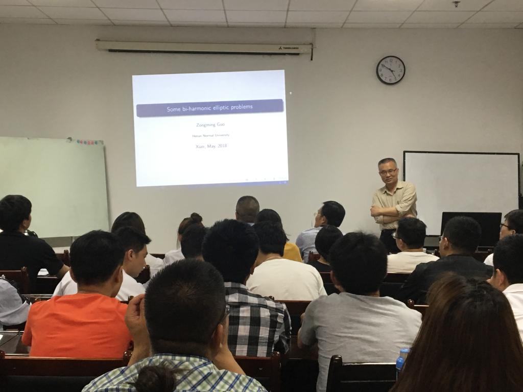 5月4日上午在雁塔校区行政楼1208室,河南师范大学博士生导师郭宗明教授为公司PA视讯师生做了题为《Some bi-harmonic elliptic problems》的精彩报告。报告由PA视讯副经理张仲华主持,部分青年教师和相关学科的研究生近80人聆听了报告。