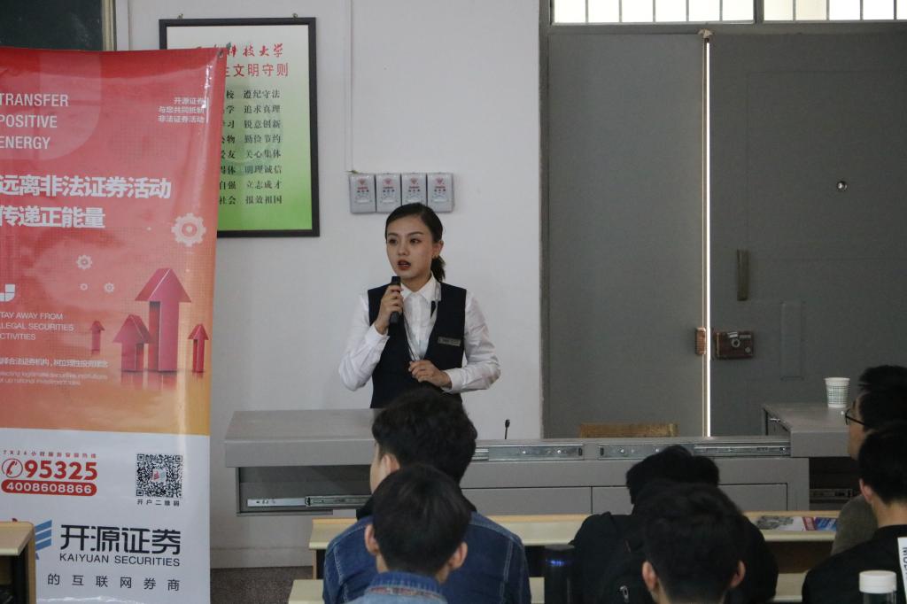 3月23日下午,PA视讯金融安全知识讲座在临潼校区骊山校园举行,开源证券股份有限公司王一茜经理做了主题为“远离非法金融活动,传递正能量”的安全知识讲座,活动由PA视讯团委书记赵明主持,16、17级全体本科生参加了讲座。