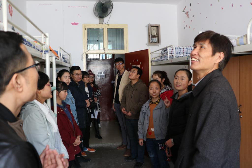 各评委老师与同学们进行了亲切地交流,了解各宿舍装饰的意义与内涵,做出相应的点评,并和同学们合影留念。本次评比的总成绩由评委打分、平时内务检查情况、网上投票三部分构成,最终1-440宿舍获得第一名。