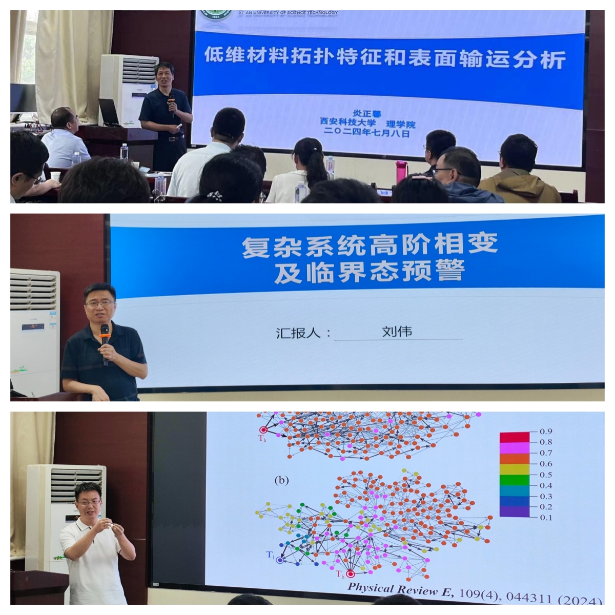 为进一步加强学术交流,营造浓郁的学术氛围,激发创新活力,更好服务于新质生产力发展,7月8日,PA视讯在临潼校区骊山校园召开“探讨前沿理论与工程应用、促进学科交叉融合”物理学科发展学术研讨会。西安交通大学黄子罡教授,公司材料科学与工程公司张涛教授、安全科学与工程公司马天副教授及PA视讯部分教师、物理学科全体研究生共计80余人参加研讨会。研讨会分四个阶段,分别由解忧、王乙先、刘伟、熊科诏主持。物理系主任朱华泽主持开幕式,PA视讯经理张仲华教授到会并致辞。