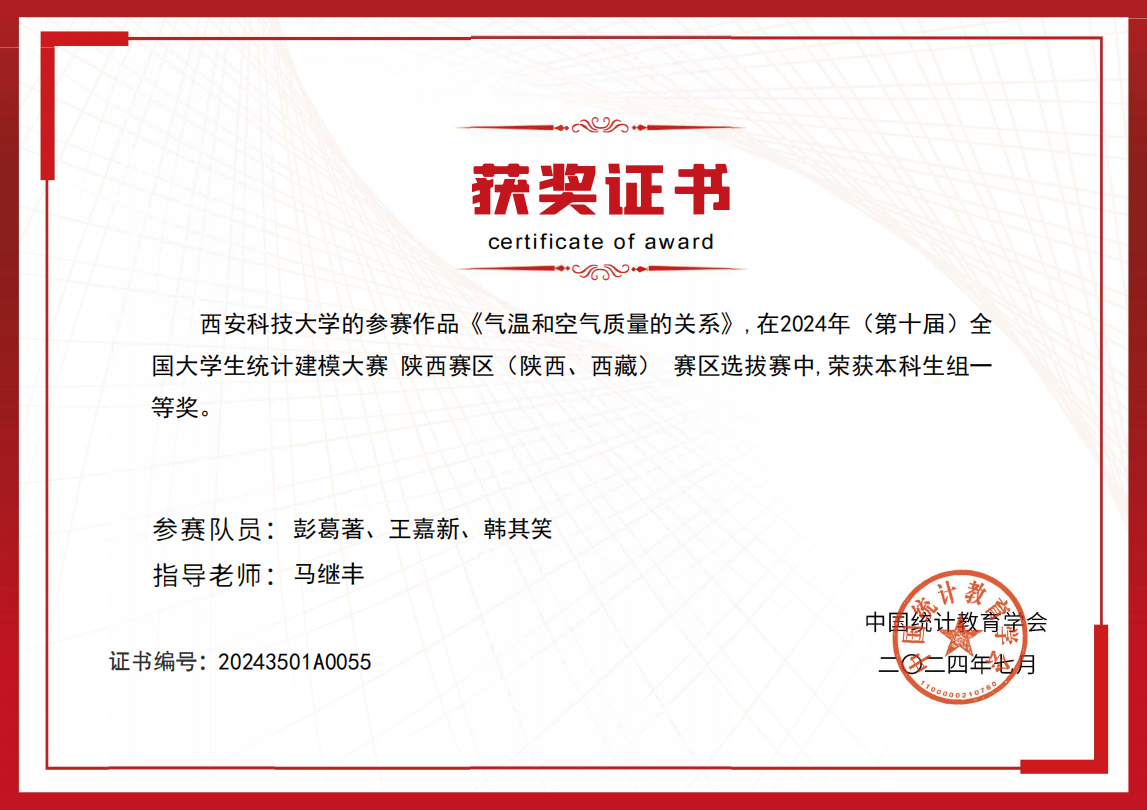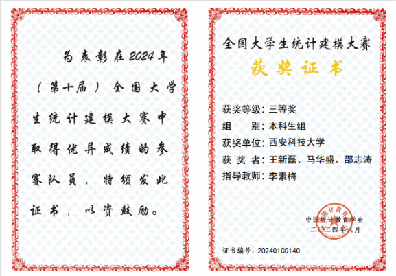 近日,由西安财经大学承办,中国政府统计中心协办的2024年第十届全国老员工统计建模大赛结果揭晓,经省组委会和国家组委会共同评阅,公司提交的212队参赛作品共获得国家三等奖2项;省一等奖7项、省二等奖16项、省三等奖39项。