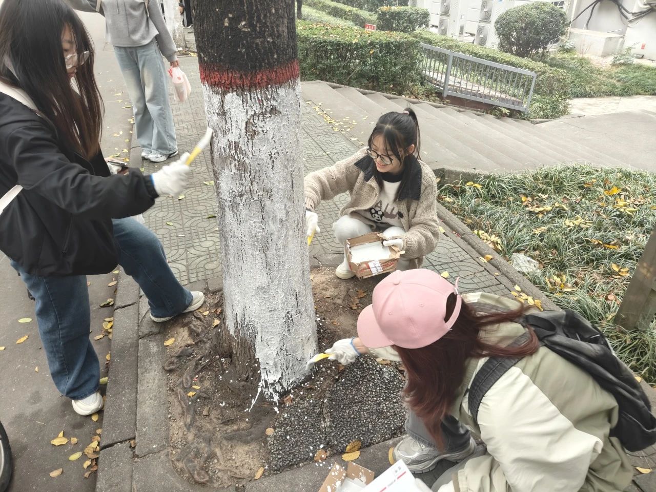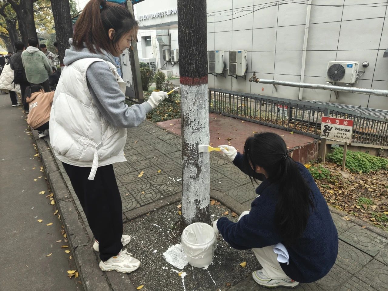 活动过程中,志愿者们在院团委员工会资助部的带领下,遵循“安全第一”的原则,手持刷子,分工明确,认真细致地为树木涂白,现场井然有序。他们不仅完成了树干涂白的任务,还主动清理了校园内的垃圾和杂草,为校园环境的整洁和美化做出了积极贡献。