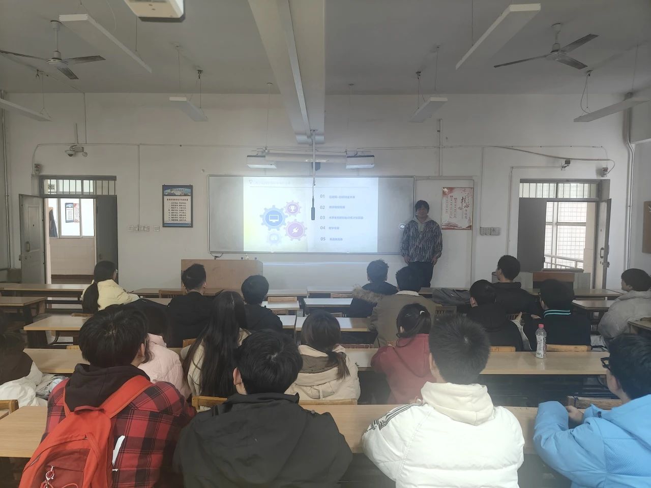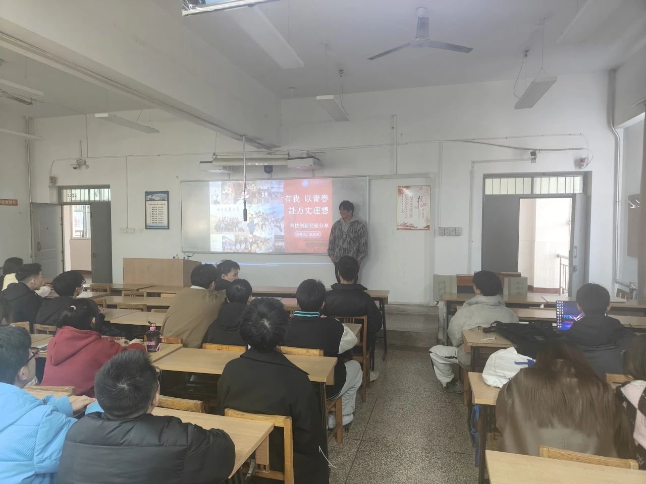 武世杰分享了自己在科技竞赛中的经历和心得。他详细阐述了竞赛的选题、准备过程、团队协作以及技术难题的解决方法,让在场的同学们受益匪浅。他不仅传授了实用的参赛技巧,还强调了创新思维和团队协作精神的重要性,鼓励同学们要敢于尝试新事物,勇于挑战自我,并在团队中充分发挥各自的优势,共同为项目的成功努力。