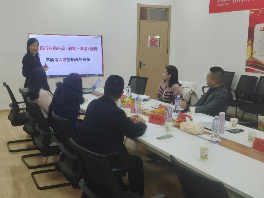 会上,张明对PA视讯一行表示欢迎,对学大教育集团的发展历史与现状和企业文化做了详细介绍;吴兰兰汇报了自己毕业后在学大教育的发展历程及其取得的成绩,对PA视讯平台老师的教育和培养表示感谢;巨小妮详细介绍了学大教育新教师培训体系,厉靖介绍了学大教育员工的薪资待遇和人才需求状况。孙颜红介绍了PA视讯平台的办学历史和PA视讯的人才培养、专业设置情况,对前去的两名应届毕业生做了推荐,并询问了员工在学大的工作情况,征求了他们对PA视讯人才培养的反馈意见。陈伟伯受人外公司委托补充介绍了人外公司的专业设置与毕业生情况,提出双方要在招生宣传、老员工就业、员工职业素养提升等方面加强交流与合作。