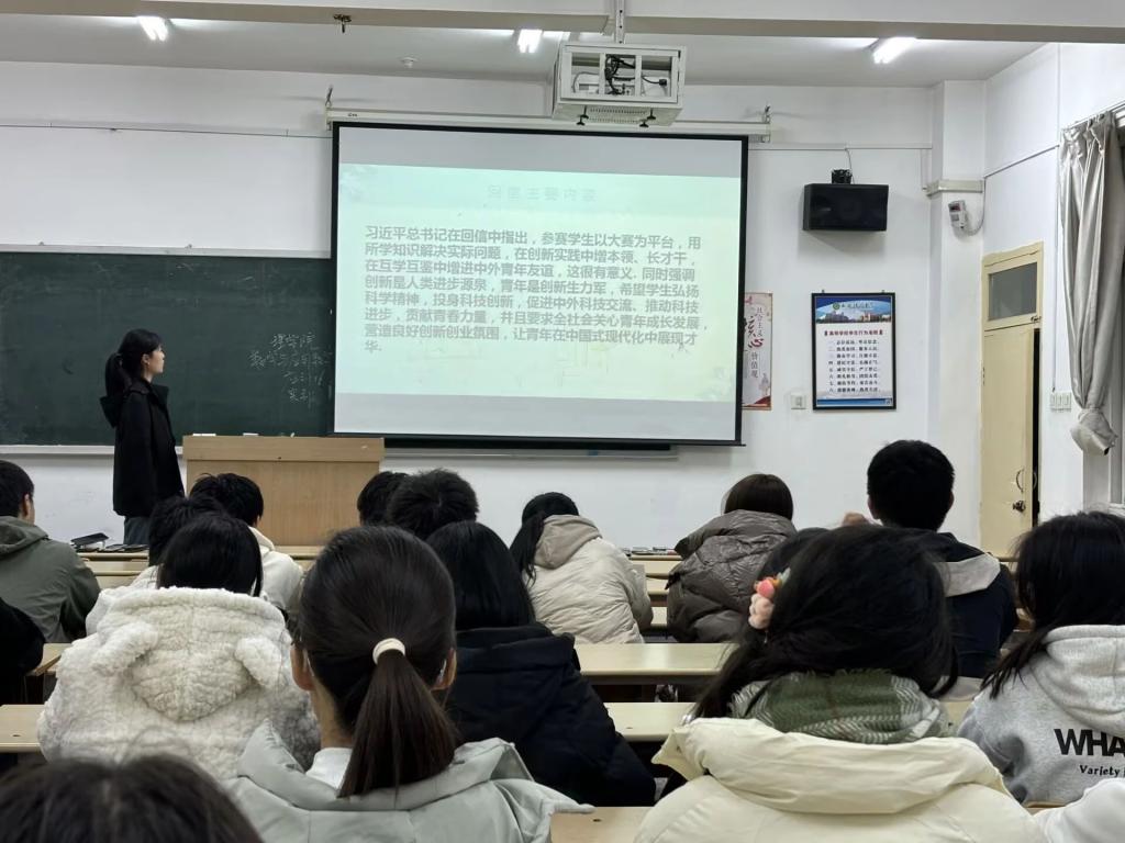 习近平总书记给中国国际老员工创新大赛参赛员工代表回信,对他们予以亲切勉励。为深入学习推进创新精神,11月24日,PA视讯数学与应用数学2401团支部举办了“学习习近平总书记给中国国际老员工创新大赛参赛员工代表的回信”主题团日活动。本次活动由数学与应用数学2401班团支书白雅薇主持。