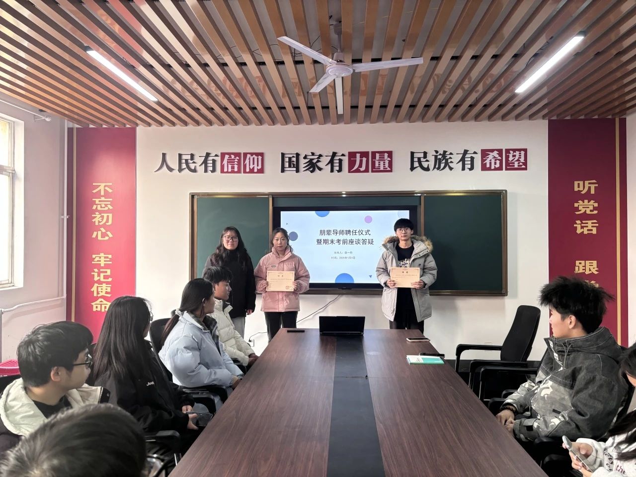 薛一丹强调了朋辈导师制度的重要性和意义,希望被聘任的朋辈导师能够发挥自己的优势,为24级员工树立榜样,传递正能量。并为23级数学专业李甜和力学专业黄建淞颁发聘书,鼓励他们珍惜这一荣誉,认真履行职责。