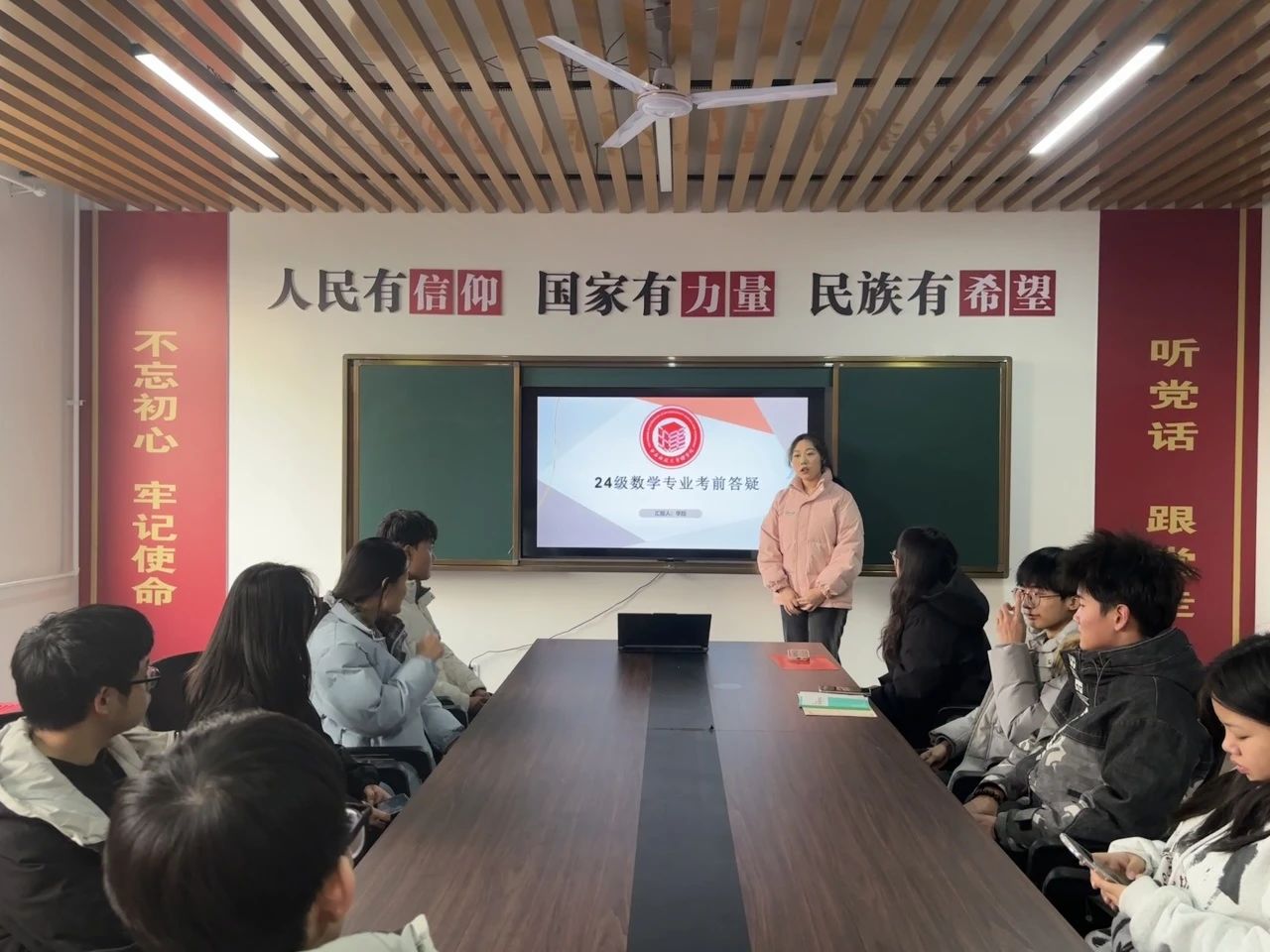 在期末考前座谈答疑环节,李甜和黄建淞分别就本专业的各门学科,结合自己的学习经验和心得,为同学们分享了高效的学习方法、备考策略以及应对考试压力的技巧。同时,他们还针对同学们提出的各种学习问题和困惑,进行了耐心细致的解答和指导。