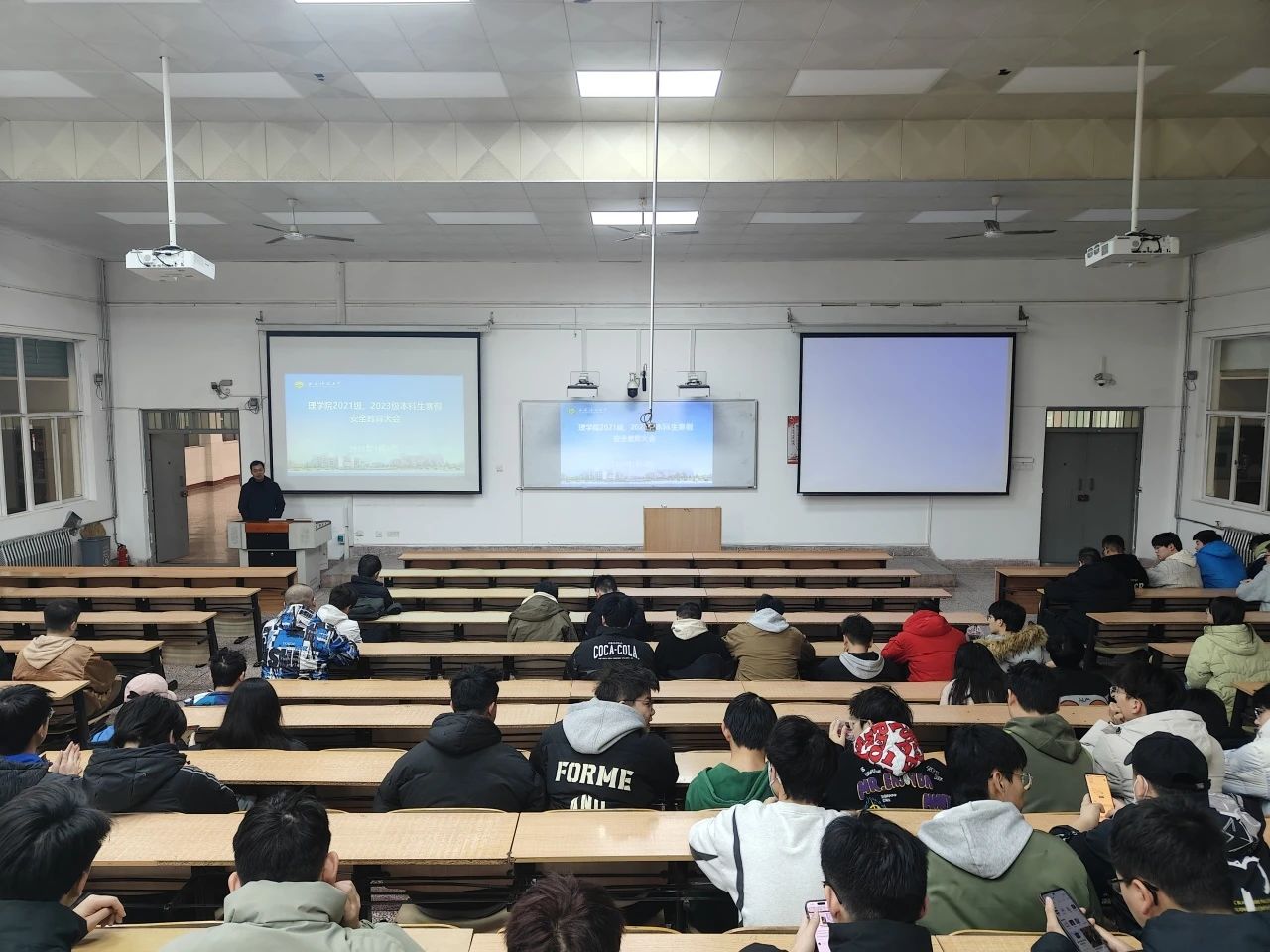 1月8日,PA视讯于3教208室召开了2021级、2023级本科生寒假安全教育大会,大会由2021级、2023级本科生辅导员侯斌刚主持,公司党委副书记陈伟伯以及2021级、2023级全体本科生参加。