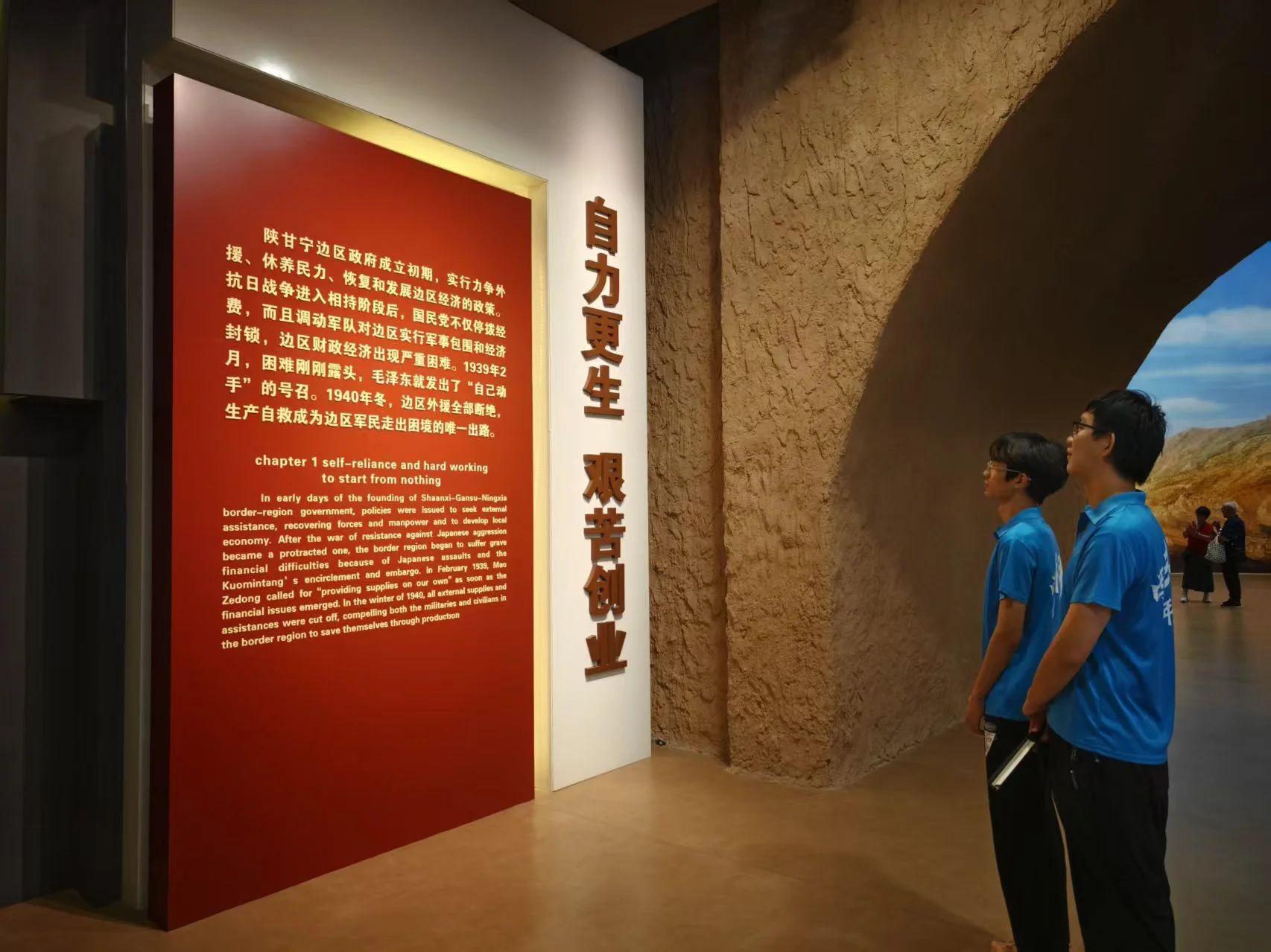 南泥湾大生产运动纪念馆内陈列的一件件锈迹斑斑的农具、一张张黑白的历史照片、一段段详实的文字记载,都在无声地诉说着当年八路军战士们开荒种地、纺线织布的艰辛岁月。同学们驻足凝视,认真聆听讲解员的介绍,当听到战士们在零下几十度的严寒中仍坚持劳作,用双手开垦出万亩良田时,不少同学眼眶湿润。“以前在课本上读到南泥湾大生产运动,总觉得离自己很遥远,今天站在这里,才真正体会到‘自力更生、艰苦奋斗’这八个字的千钧重量,先辈们用血汗铸就的精神丰碑,值得我们用一生去守护和传承。” 同学们感慨道。