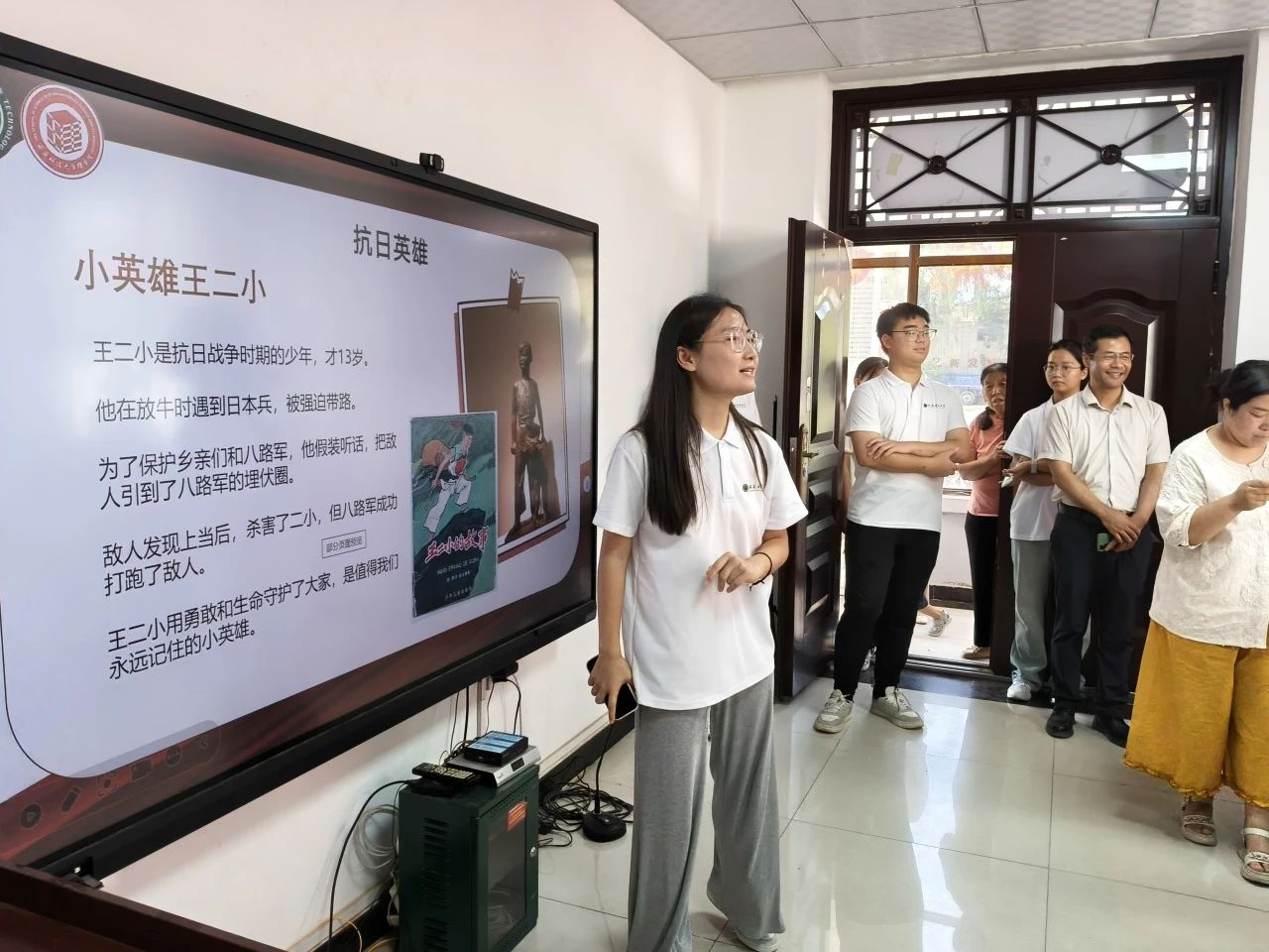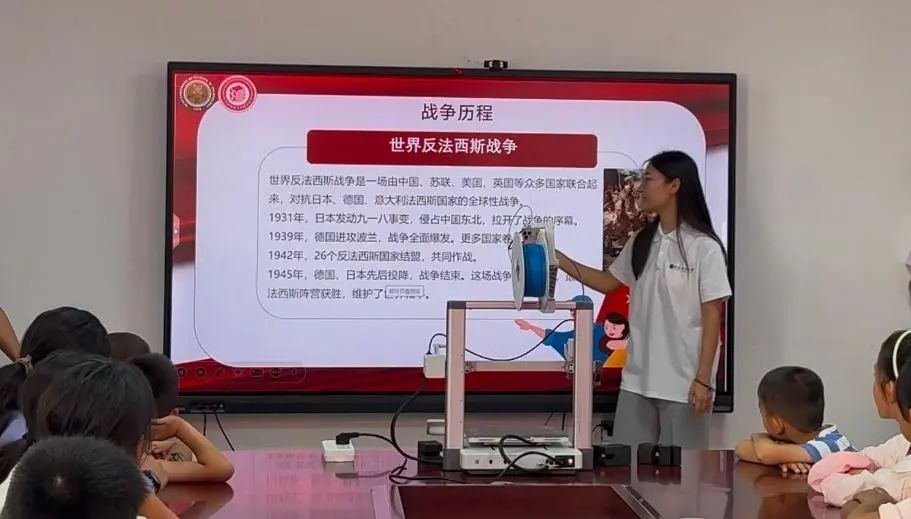 在知识与趣味的交融中,实践团成员也积极参与到活动中来。杨瑞欣为大家带来了一场别开生面的爱国主义教育宣讲。宣讲过程中,她与孩子们积极互动,通过问答的方式分发奖品,现场气氛热烈非凡,让爱国主义精神在孩子们心中深深扎根。