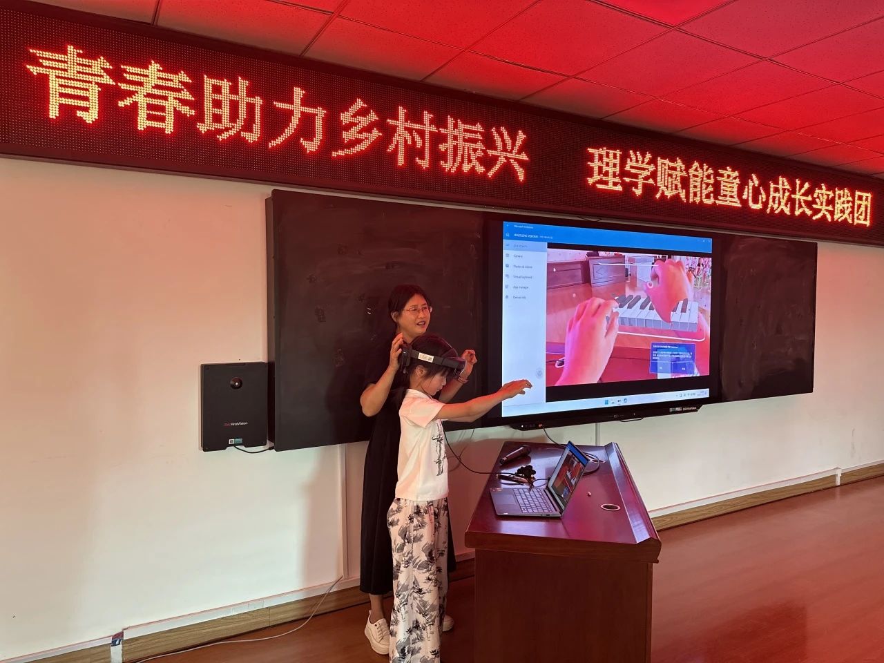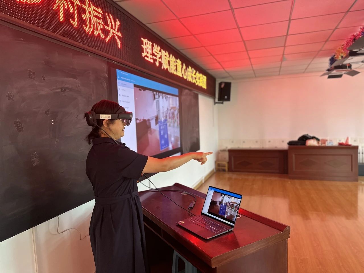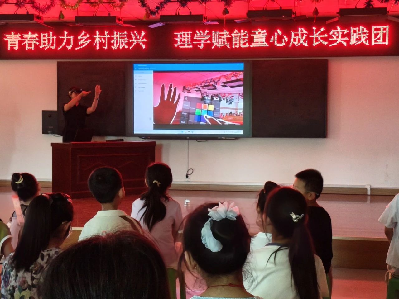 刘佳老师进行了MR技术讲解及现场展示。MR(混合现实)技术作为当下前沿科技,对于乡村儿童来说充满了神秘感。刘佳老师用通俗易懂的语言,深入浅出地介绍了MR技术的原理、应用领域以及发展前景,让孩子们对这一科技有了初步的认识。