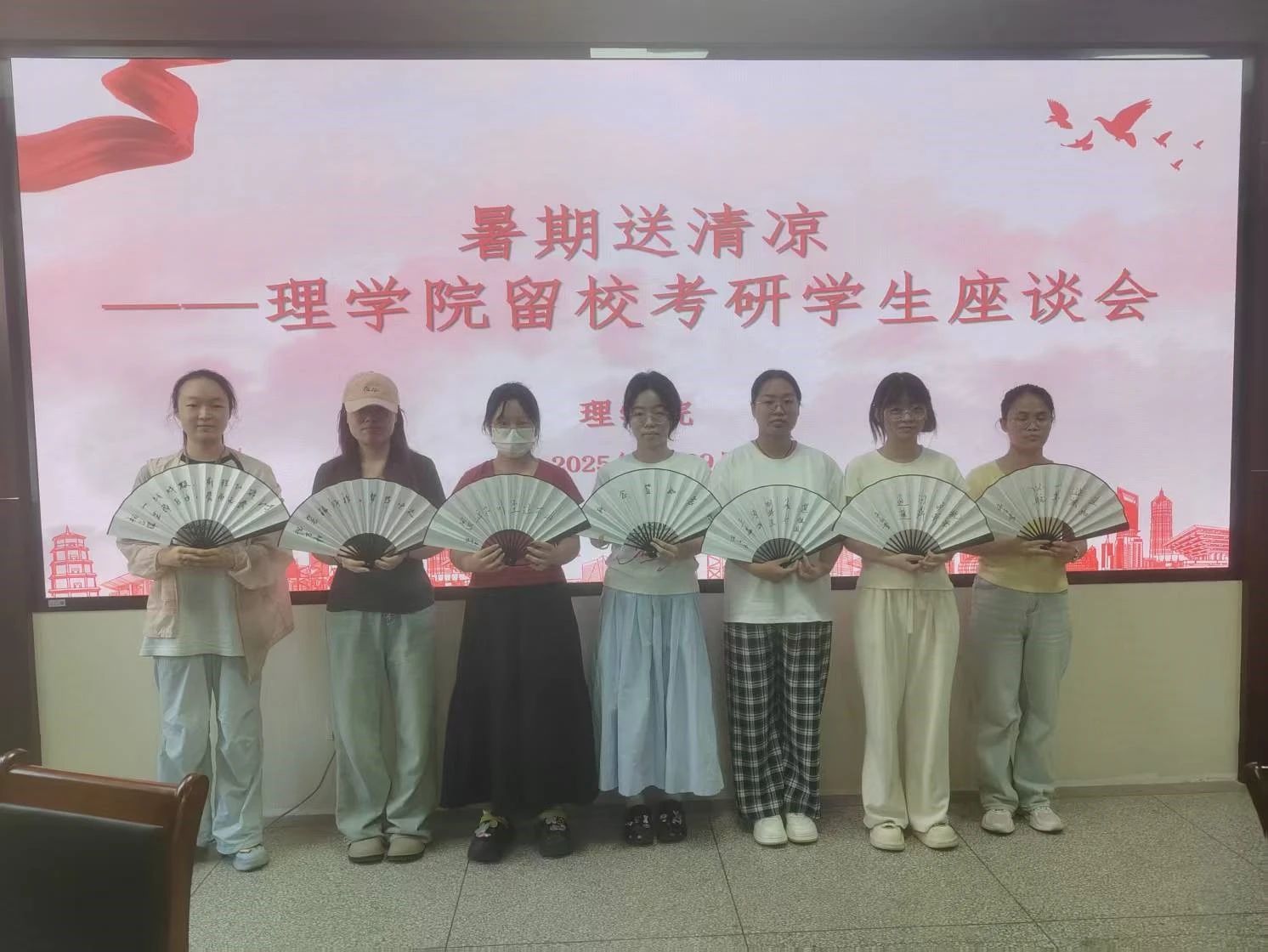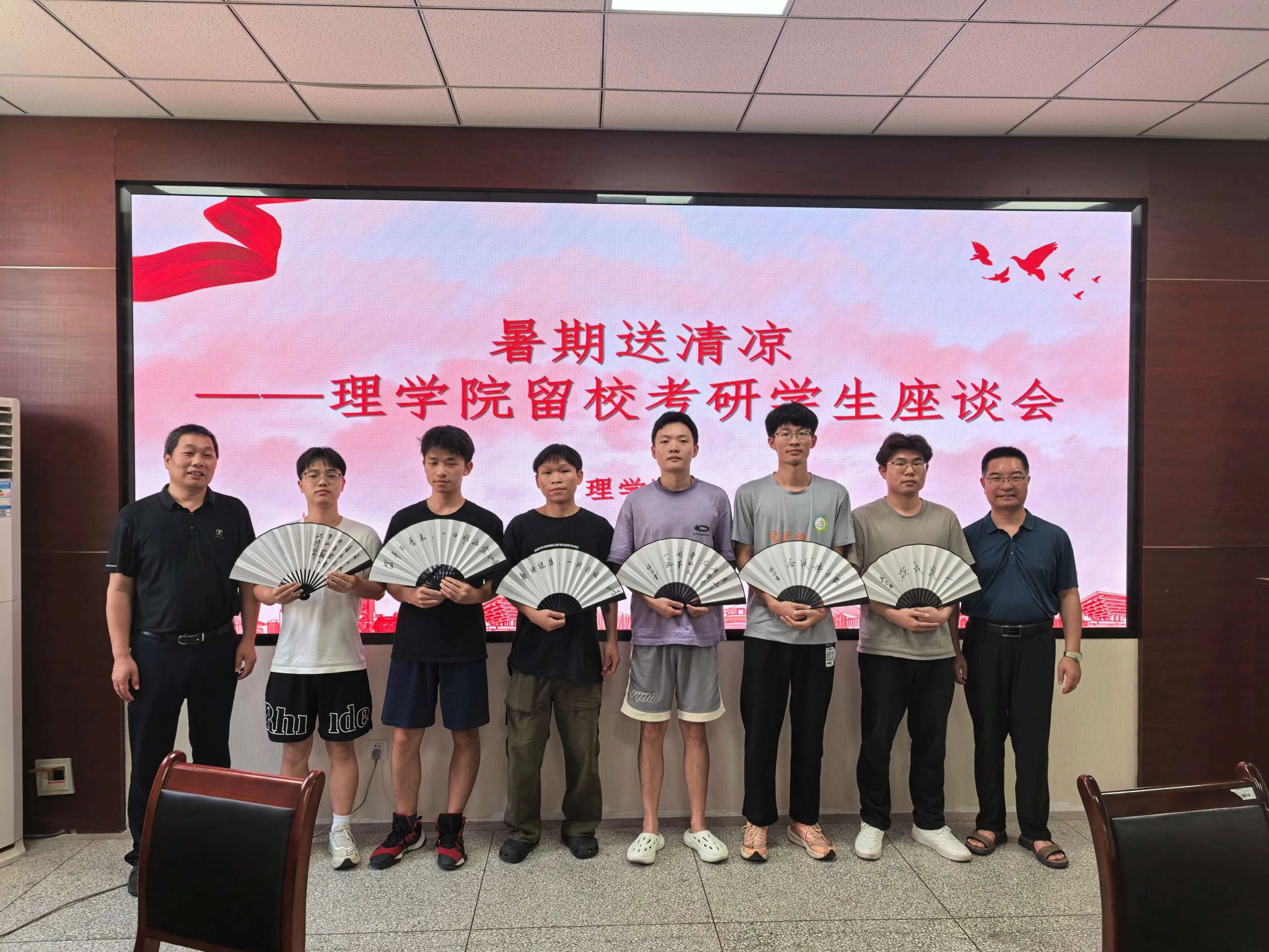 在4220会议室,一场温馨的座谈会如期举行,30余名备战考研的员工齐聚一堂。张仲华亲切询问同学们在备考过程中遇到的困难,细致了解大家的考研目标确定情况。他叮嘱同学们,报考院校和专业需深思熟虑、慎重选择,备考阶段则要脚踏实地、积极投入,做到 “真努力、真考研”,用扎实的付出追逐梦想。陈伟伯则从备考策略和安全保障两方面给出建议,他鼓励同学们充分整合学习资源,全身心投入复习,全力以赴争取 “一战成硕”;同时特别提醒大家在暑假期间务必注意人身和财产安全,增强防溺水、防诈骗意识,确保安心备考。座谈会结束后,公司为考研员工精心准备了手写考研励志话语的折扇,一句句温暖有力的寄语,为同学们的备考之路注入了精神力量。