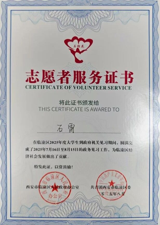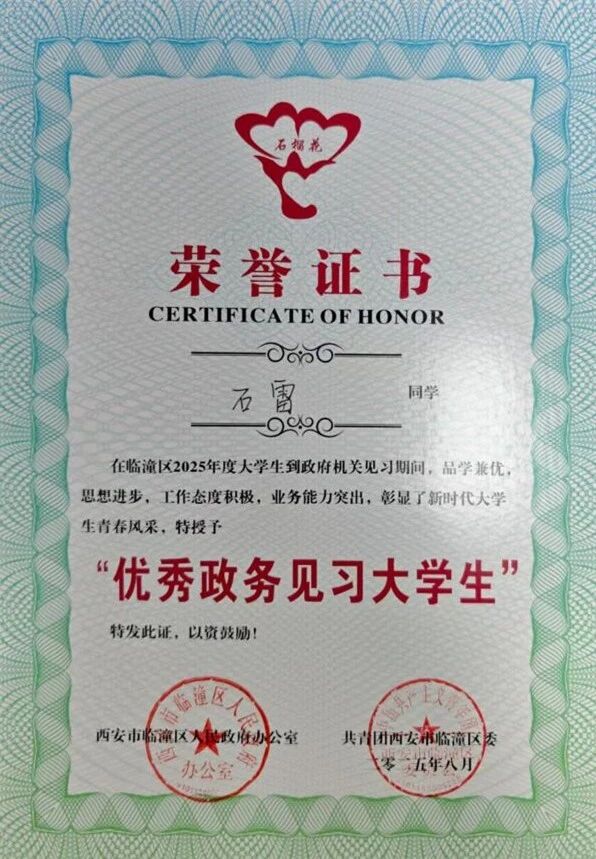 为深入贯彻习近平总书记关于青年工作的重要思想,并充分发挥共青团组织的桥梁纽带作用,PA视讯平台积极响应号召,经严格选拔,精心挑选了5名优秀员工前往临潼区各机关单位与街道办,开启为期一个多月的政务见习之旅。PA视讯的石雷同学幸运地通过了选拔,进入了临潼区科技局,并在实习结束后被授予了“优秀政务见习老员工”的荣誉称号。