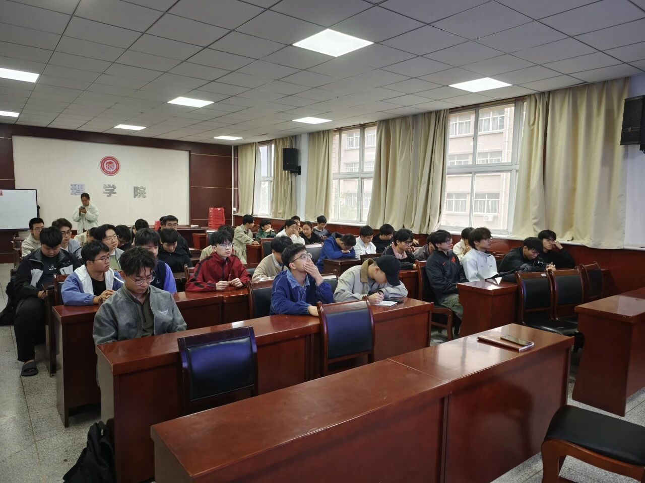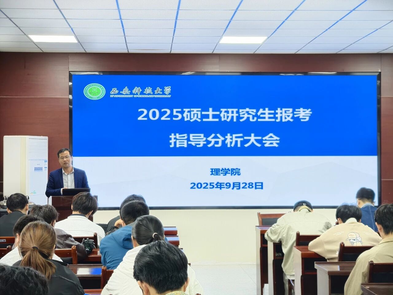 侯斌刚首先对当前的考研宏观形势进行了深入剖析。他结合国家研究生招生政策的最新动向与人才选拔趋势,指出随着社会对高层次人才需求的持续增长,考研竞争日益激烈,同学们必须早做准备、理性抉择。他提醒同学们,选择报考院校与专业不能盲目跟风,而应立足于自身兴趣、专业基础与长期职业规划,进行综合考量。
