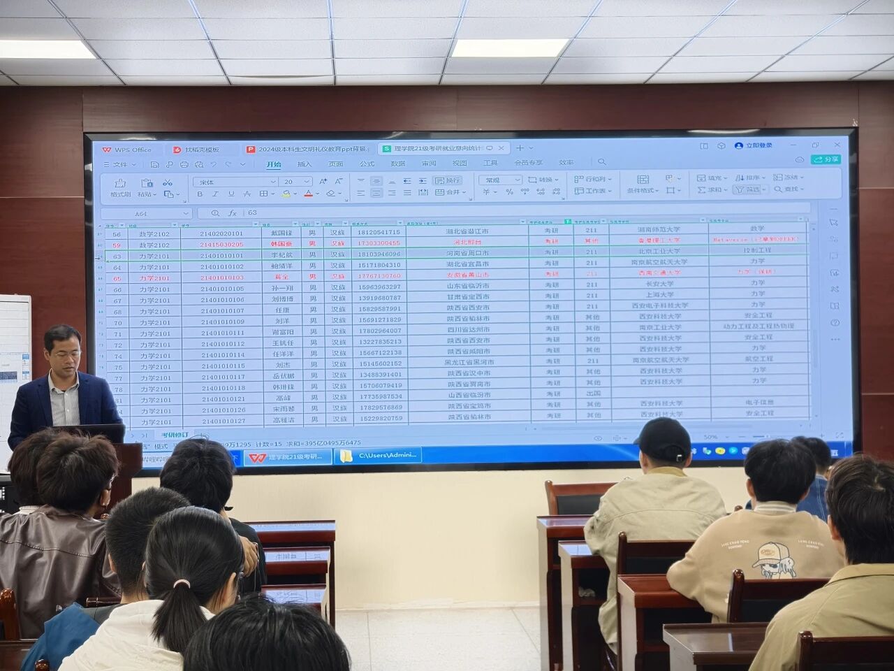 侯斌刚还重点结合了PA视讯往年的考研数据进行了分析。他展示了近年来本院员工主要报考院校的录取分数线波动、热门专业的竞争激烈程度以及调剂成功案例等具体数据。通过对这些数据的横向与纵向对比,直观地揭示了“扎堆报考”热门院校所带来的风险。