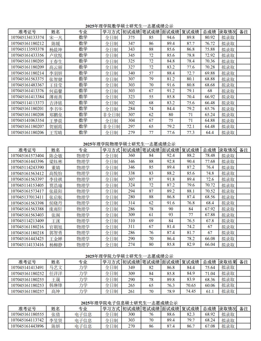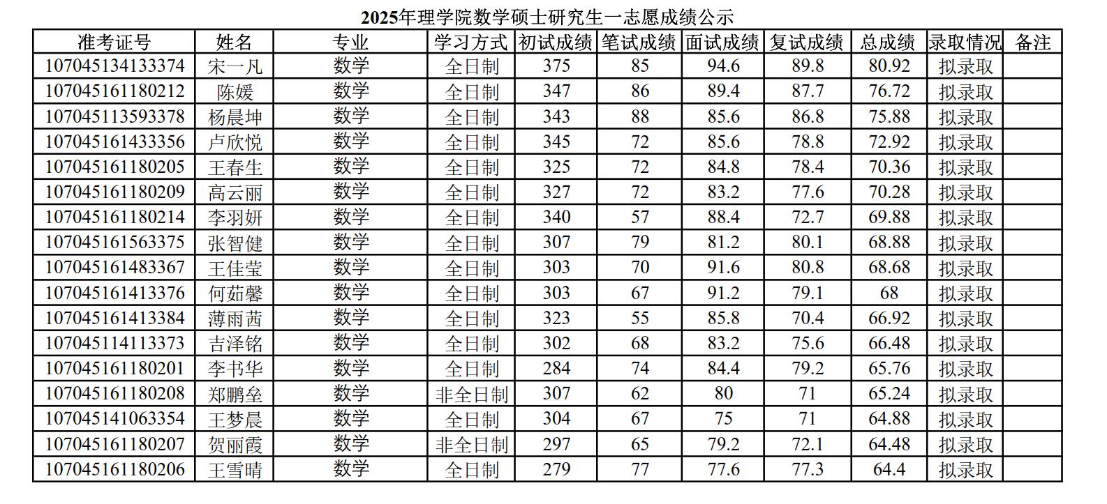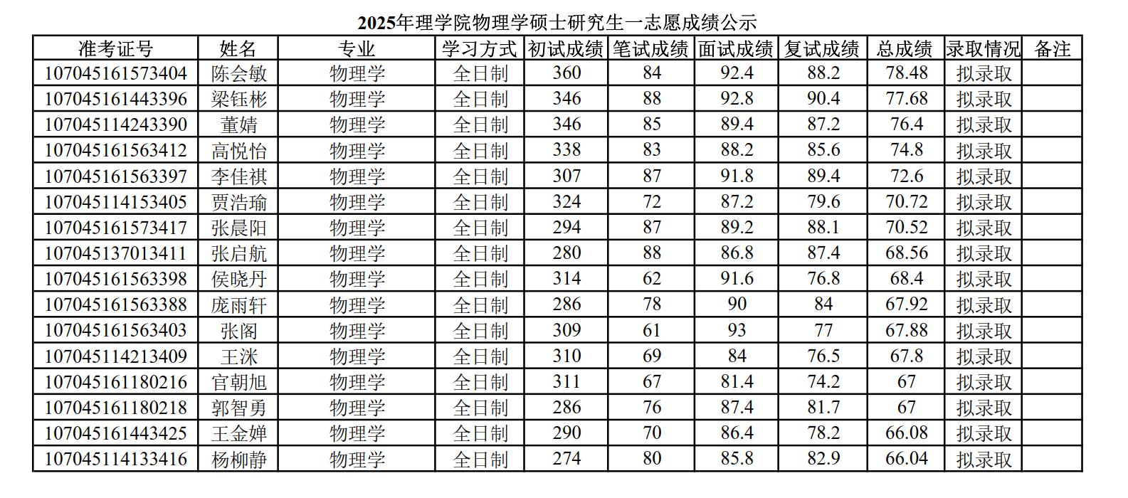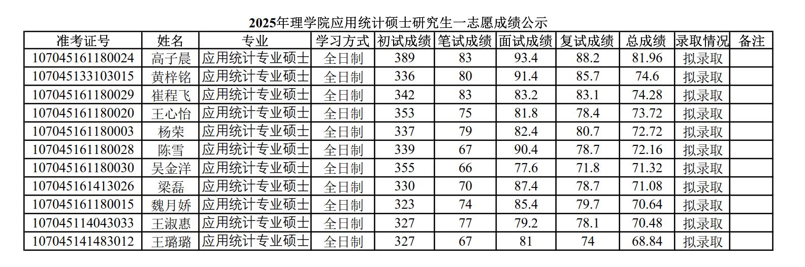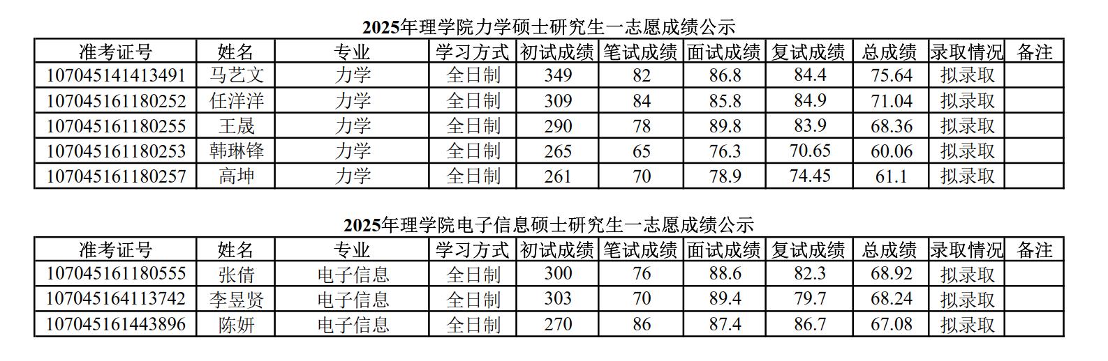 2025年PA视讯硕士研究生招生考试一志愿成绩公示